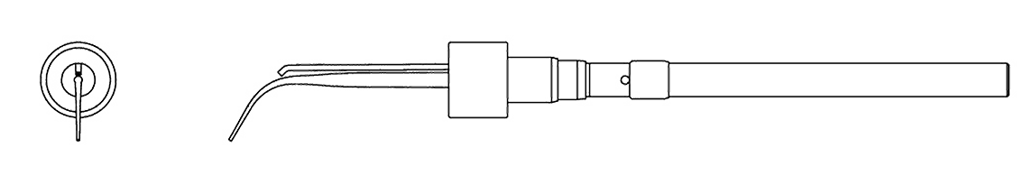 To provide excellent furcation access in the 1st and 3rd quadrants, detect periodontal pocket, and accomplish root planing. To be used only after gross debridement with periapical tip.
